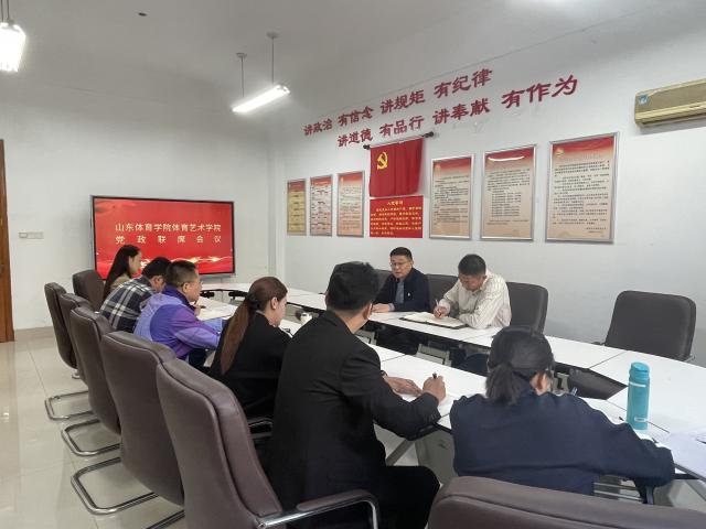 第二阶段召开党政联席会议。会上,表决通过了关于增补苏焕振同志为8868体育APP学术委员会、教学委员会副主任委员的决议。同时通报了关于参加全国体育院校艺术类专业建设协作会年会的工作方案等事项。